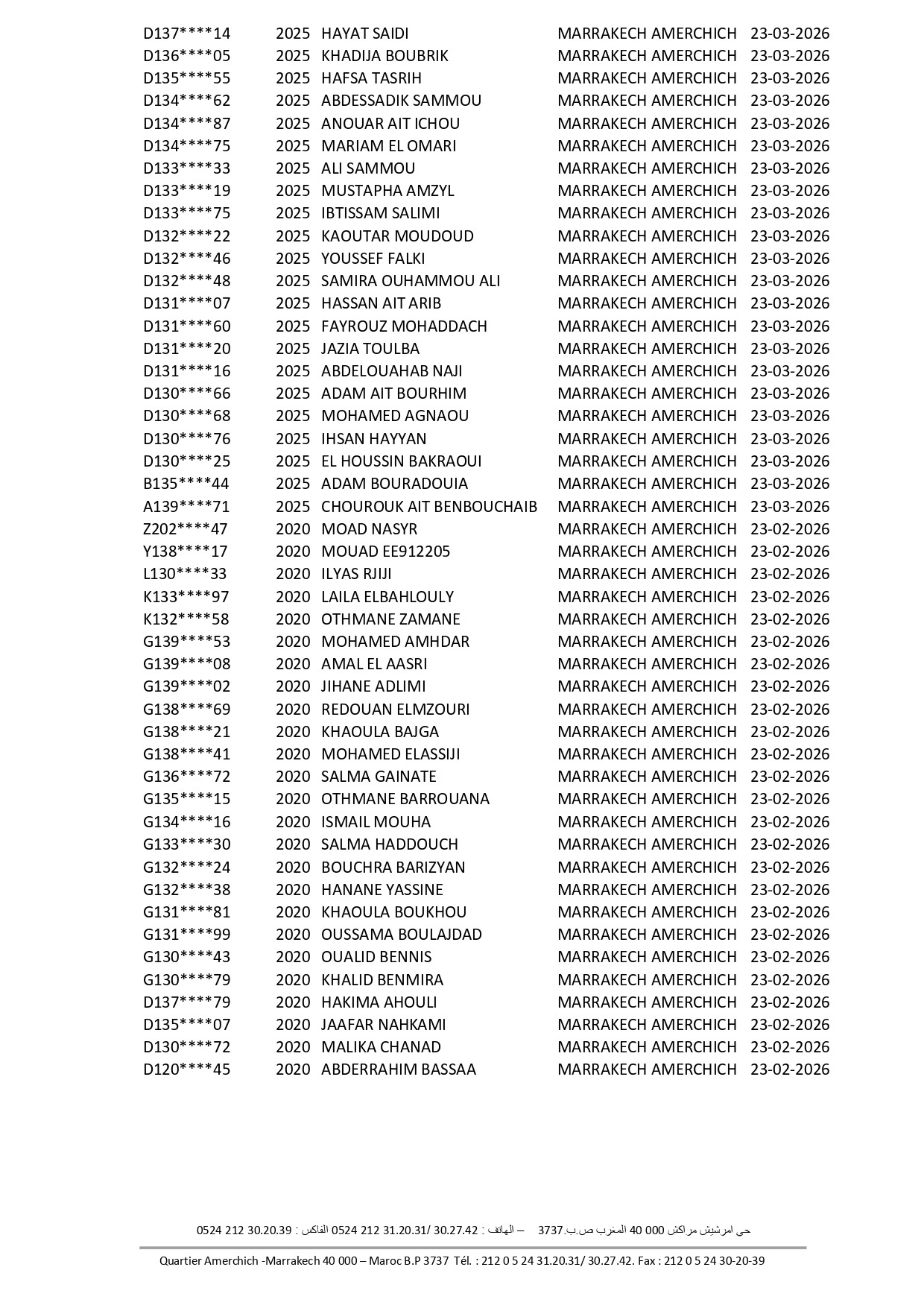 FLSHM Rue Amarchich, Marrakesh
