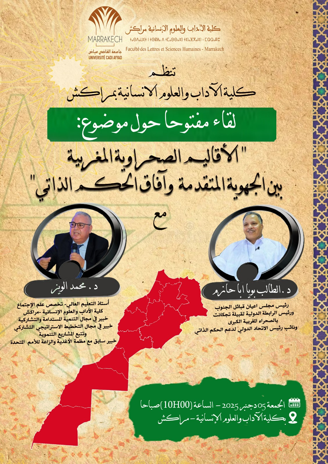 لقاء مفتوحا حول موضوع: الأقاليم الصحراوية المغربية بين الجهوية المتقدمة وآفاق الحكم الذاتي