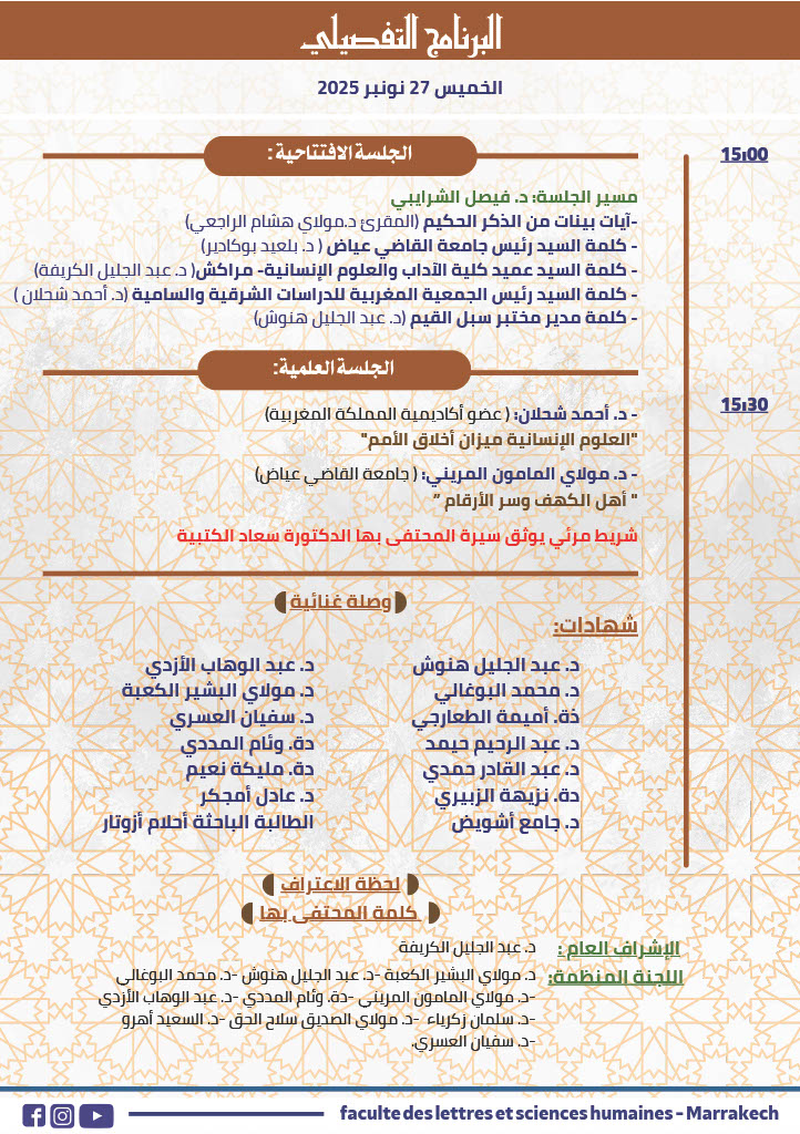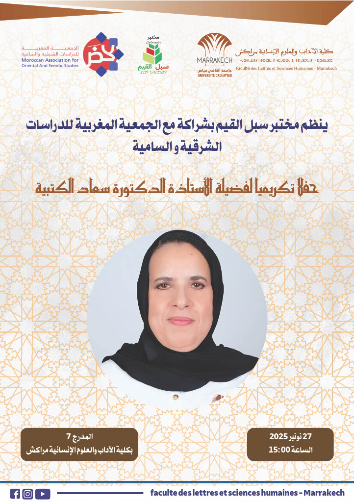 ينظم مختبر سبل القيم بشراكة مع الجمعية المغربية للدراسات الشرقية والسامية حفلا تكريميا لفضيلة الأستاذة الدكتورة سعاد الكتبية