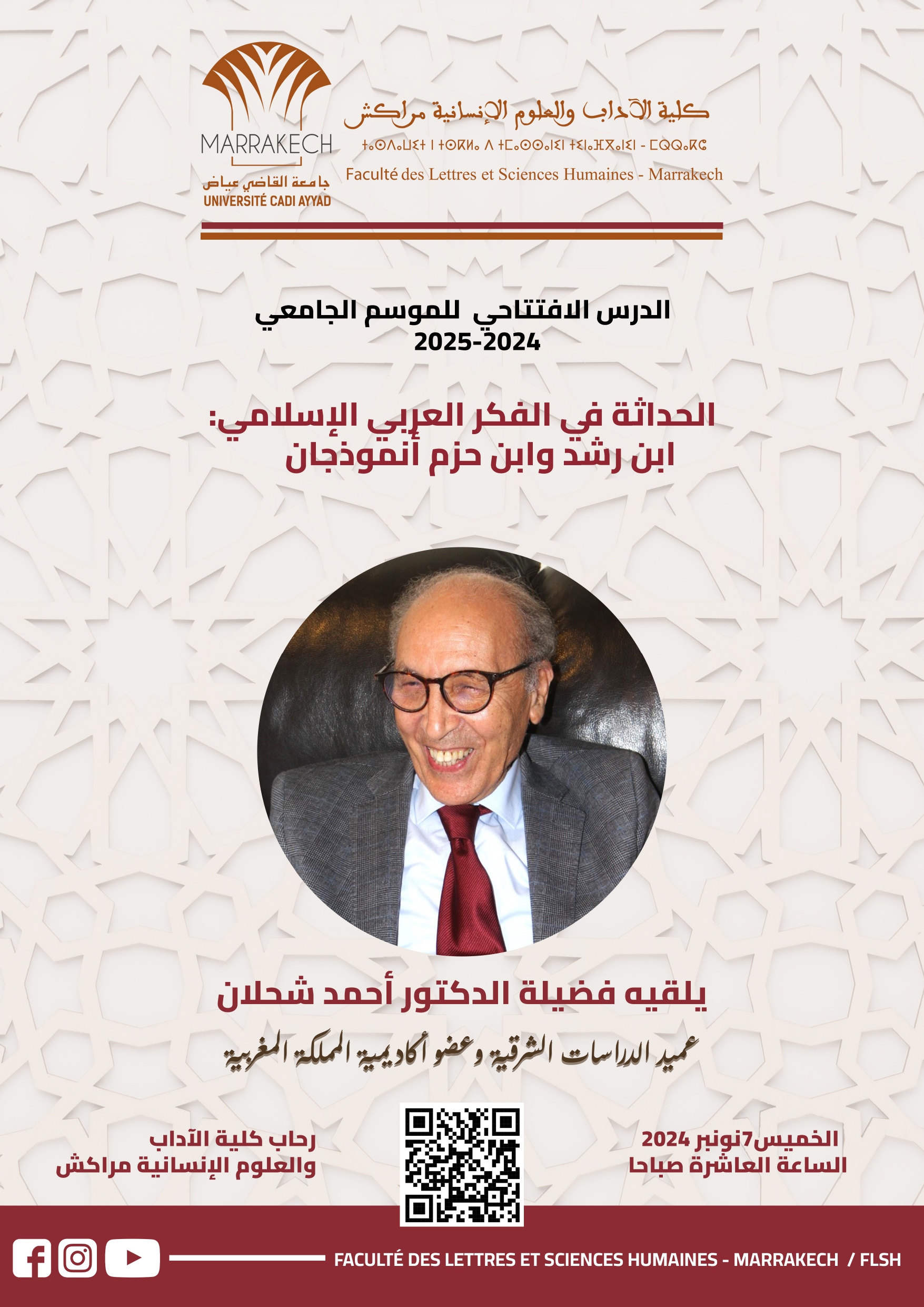 الدرس الإفتتاحي للموسم الجامعي 2024-2025 تحت عنوان الحداثة في الفكر العربي الإسلامي : ابن رشد وابن حزم أنموذجان