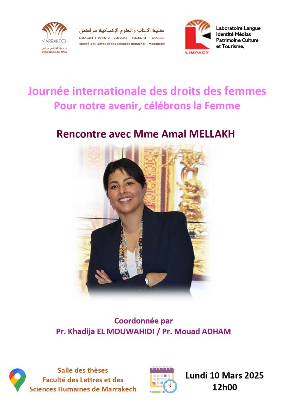 Journée internationale des droits des femmes Pour notre avenir, célébrons la Femme Rencontre avec Mme Amal MELLAKH